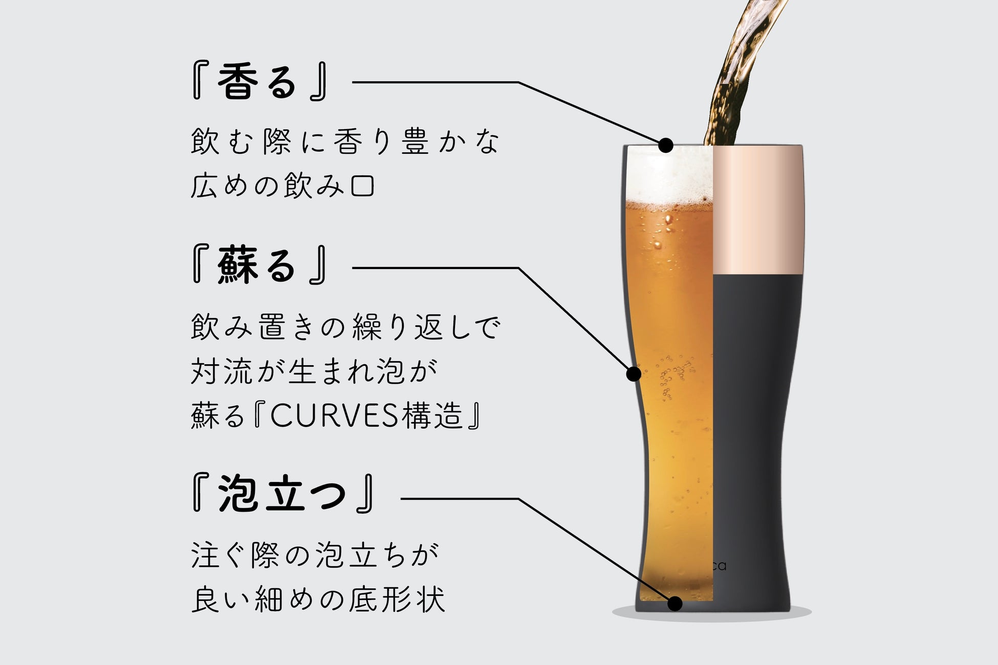 - ビールを美味しく飲むために考え抜かれた本体形状