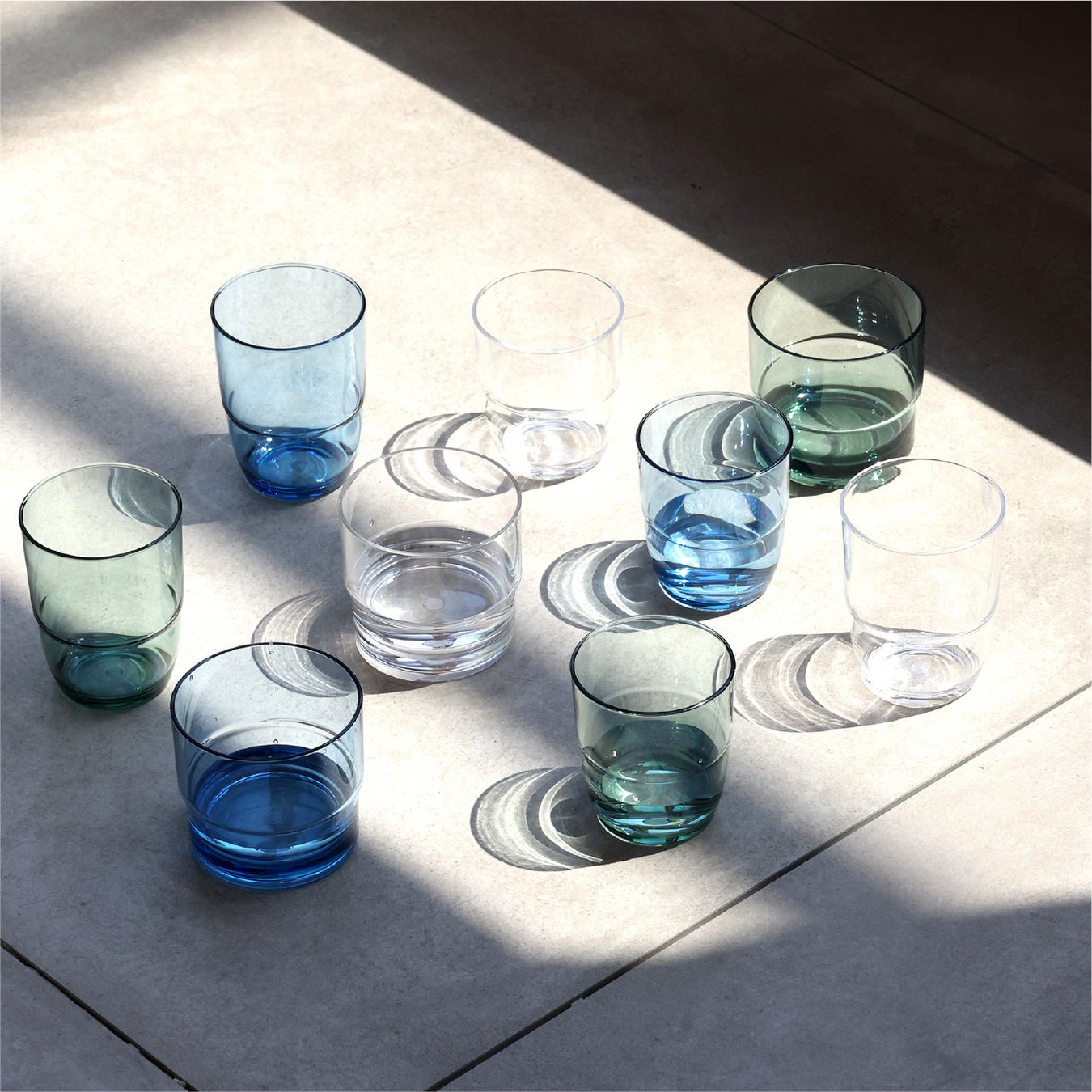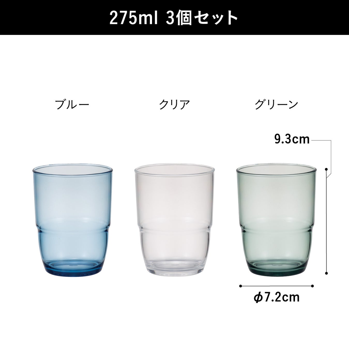 一見ガラスのような透明度と美しさですが、樹脂素材のタンブラー3個セット。