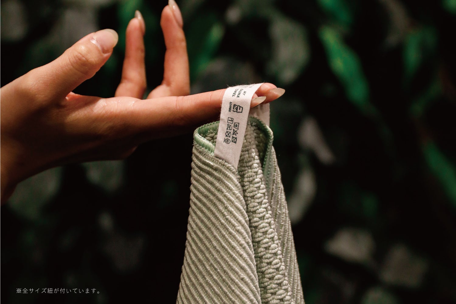 温泉・サウナ中の持ち歩きやタオルの一時置き・タオルを乾かすときも引っ掛けておける便利な紐付き。