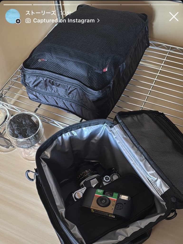 保冷機能の付いたボックスバッグをカメラ収納ケースとして活用。