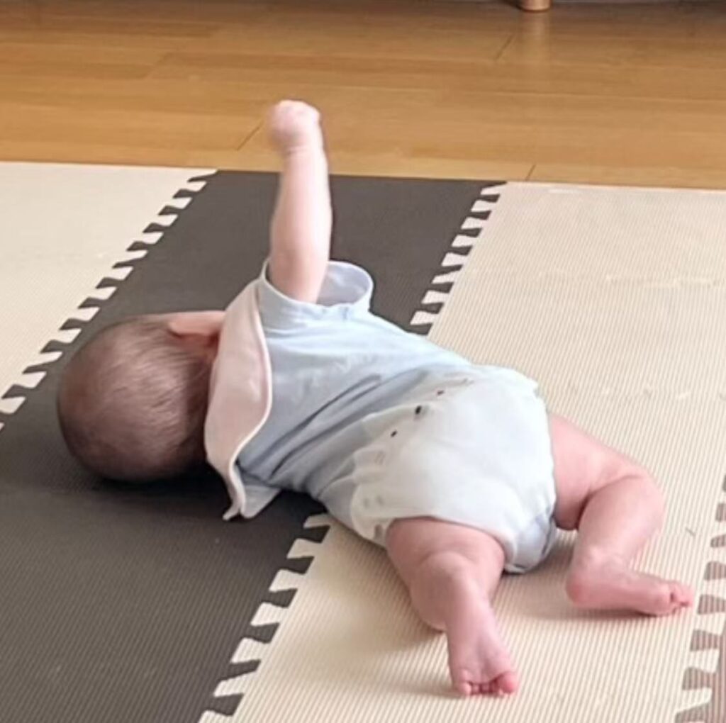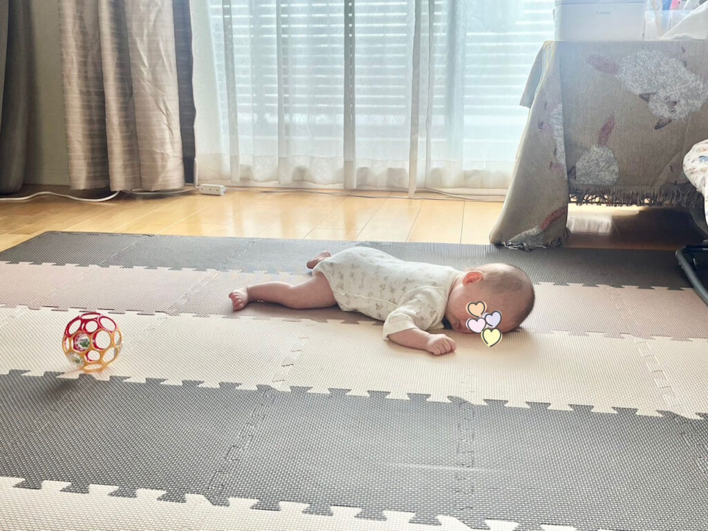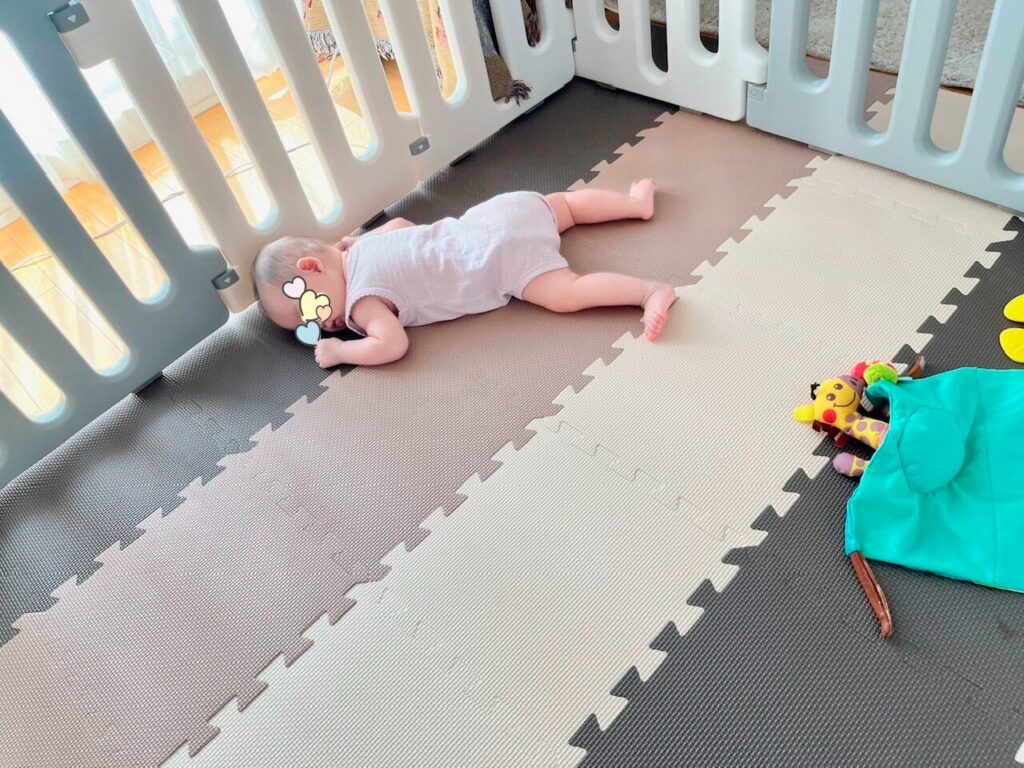寝返りをうてるようになってからはあちこちに転がっていくため広い範囲をカバーできるジョイントマットは必須!