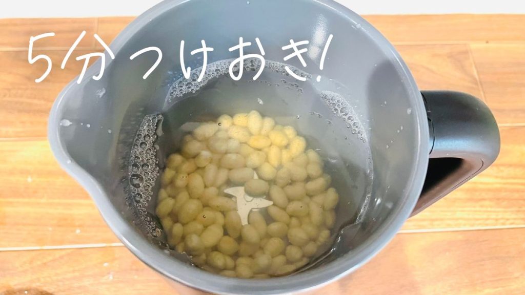 大豆を水に5分つけます。