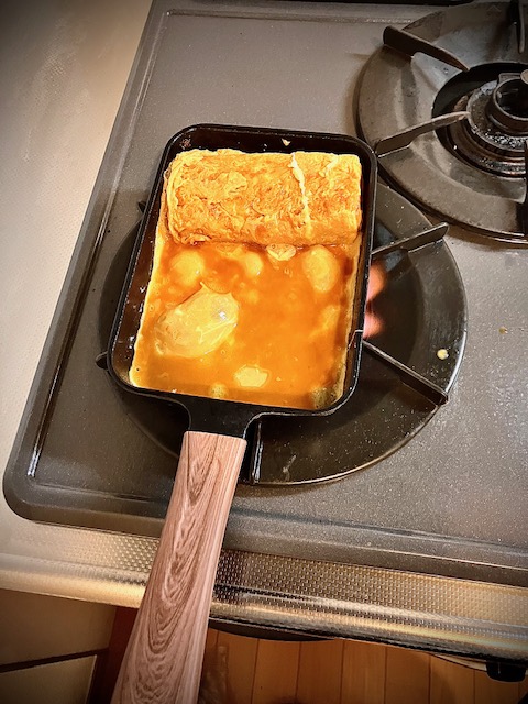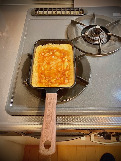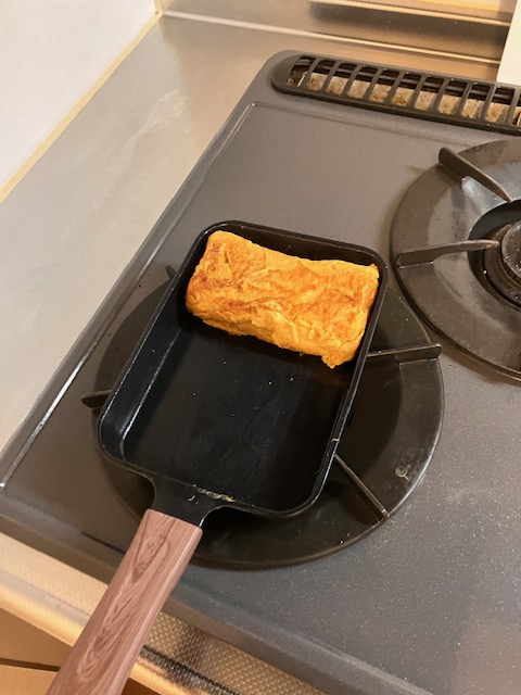 普通のフライパンで玉子焼きを作るのに苦戦していましたが、